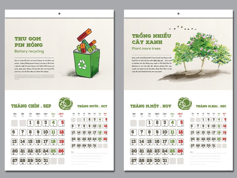 Lịch ghim giữa 7 tờ - Vì 1 hành tinh xanh